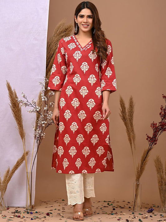 Elegant Double-Layered Mul Handblock Boota & Jaal Print Bias-Cut Dress